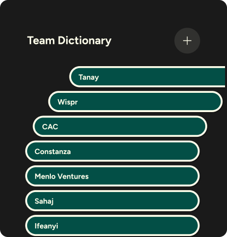 1) Team Dictionary lets you add your team’s names, jargon, and acronyms to a shared dictionary so that communication stays clean and consistent.