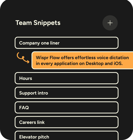 2) Team Snippets let you create voice shortcuts for the things your team says repeatedly, like scheduling links, customer follow-ups, and FAQs. Just say the word and Flow inserts the fully polished text.